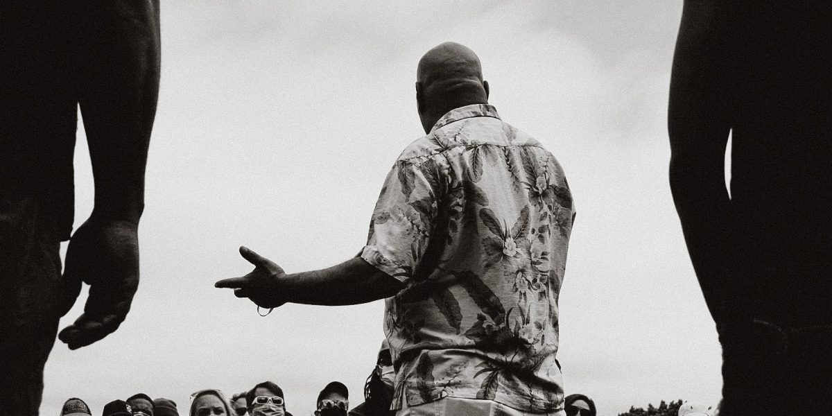 He wrote a piece on his phone and read it out loud to the uncounted number of faces in the field.